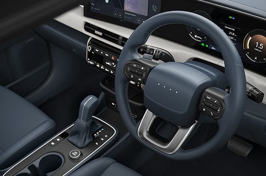 At the heart of the cabin sits the Dual 62.5 cm (12.3” + 12.3”) curved panoramic displays of infotainment & cluster, providing seamless connectivity and a tech-forward and premium environment.