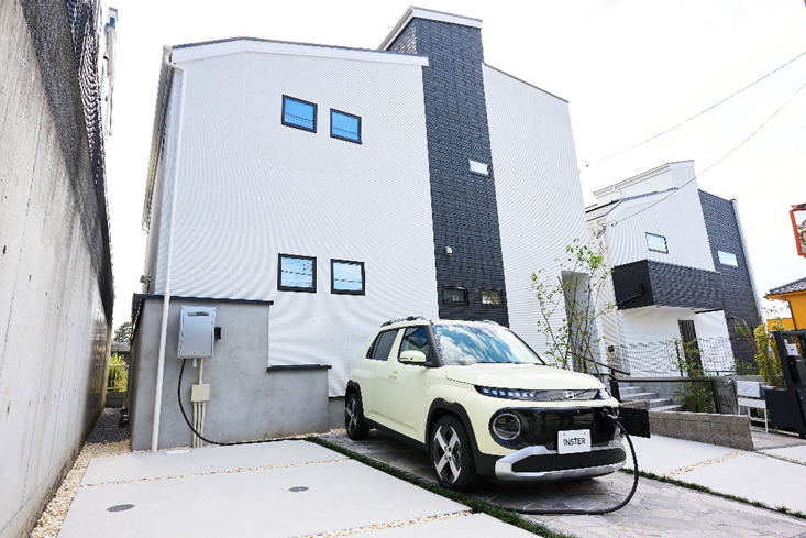 このたび両社は、2025年4月に発売されたヒョンデの最新EV「INSTER」と、太陽光発電・蓄電池を標準装備しZEH基準に対応した高性能住宅「ウーディア」を組み合わせた新しいライフスタイル提案をスタートします。第1弾として、埼玉県さいたま市南区に建設された2棟を対象に、9月30日より販売を開始します。