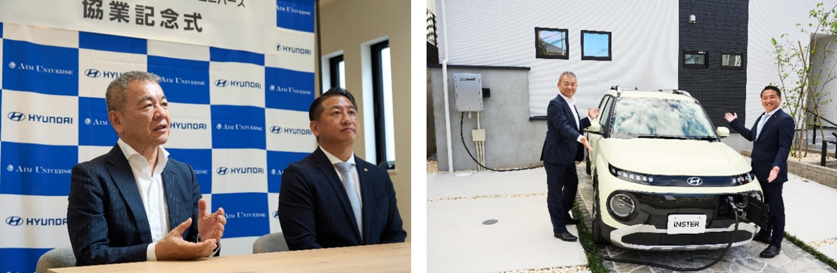 Hyundai Mobility Japan株式会社と、株式会社アイム・ユニバースは、電気自動車と住宅を組み合わせた新たなライフスタイルの提案に向け、MOUを締結しました。