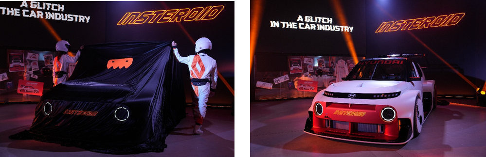 今回公開した「INSTEROID」は、そのINSTERをベースに、「もしも(What if)?」という問いから生まれた、”創造と遊びの実験車”です。Hyundai Motorの欧州デザインチームが、自動車業界の「Glitch(グリッチ)」として開発。デザイナーの遊び心と挑戦を存分に詰め込み、常識を逸脱したデザインコンセプトカーとして誕生しました。