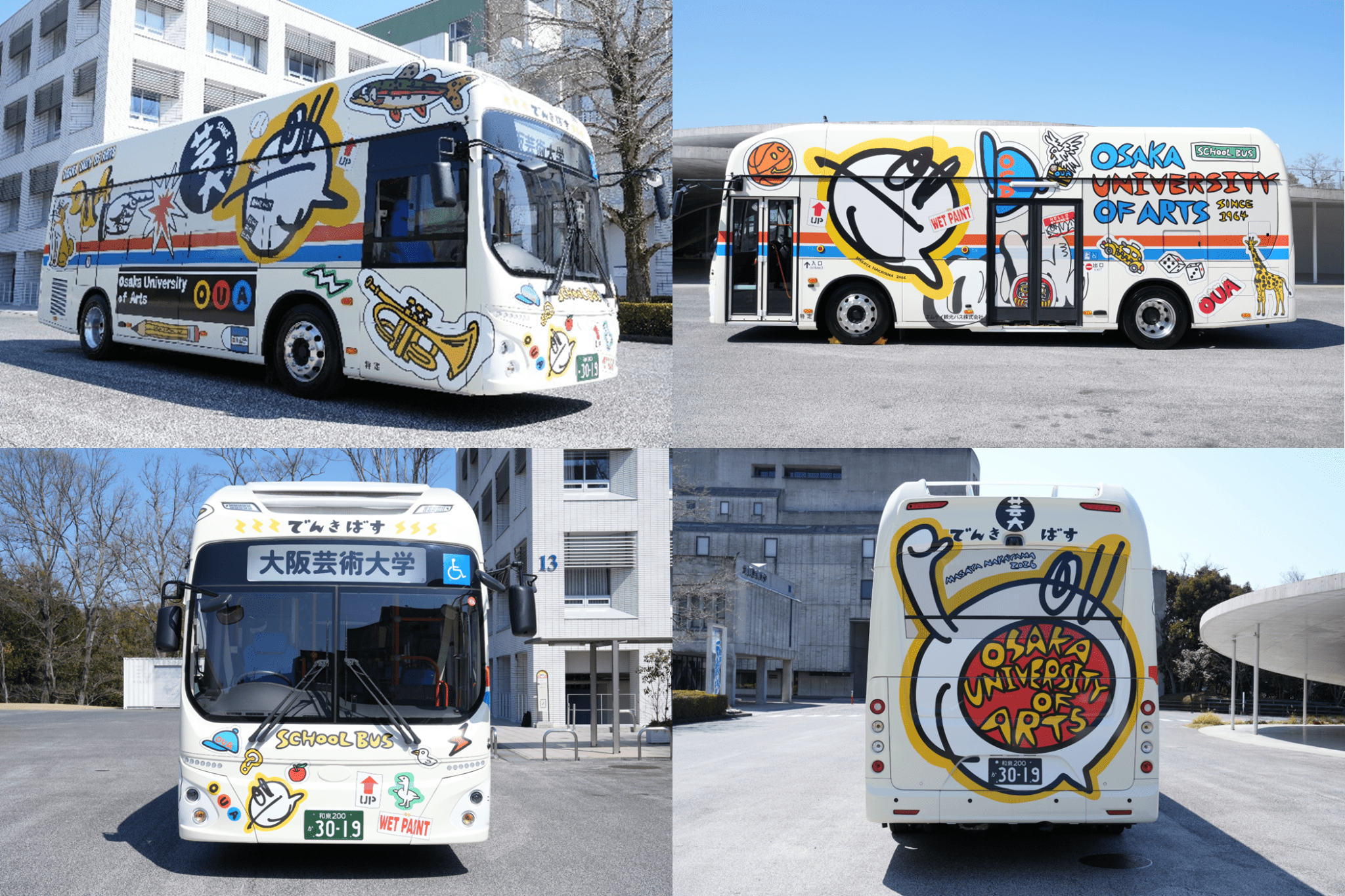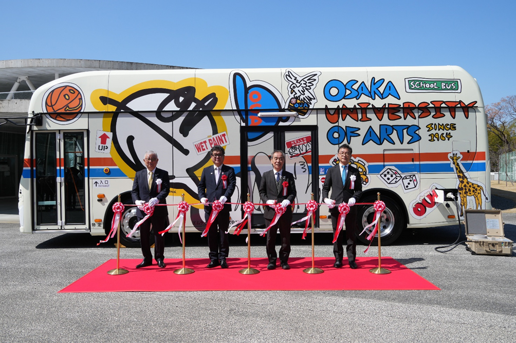 ・大阪芸術大学の卒業生がデザインしたオリジナルラッピング電気バスのお披露目出発式を大学内で開催