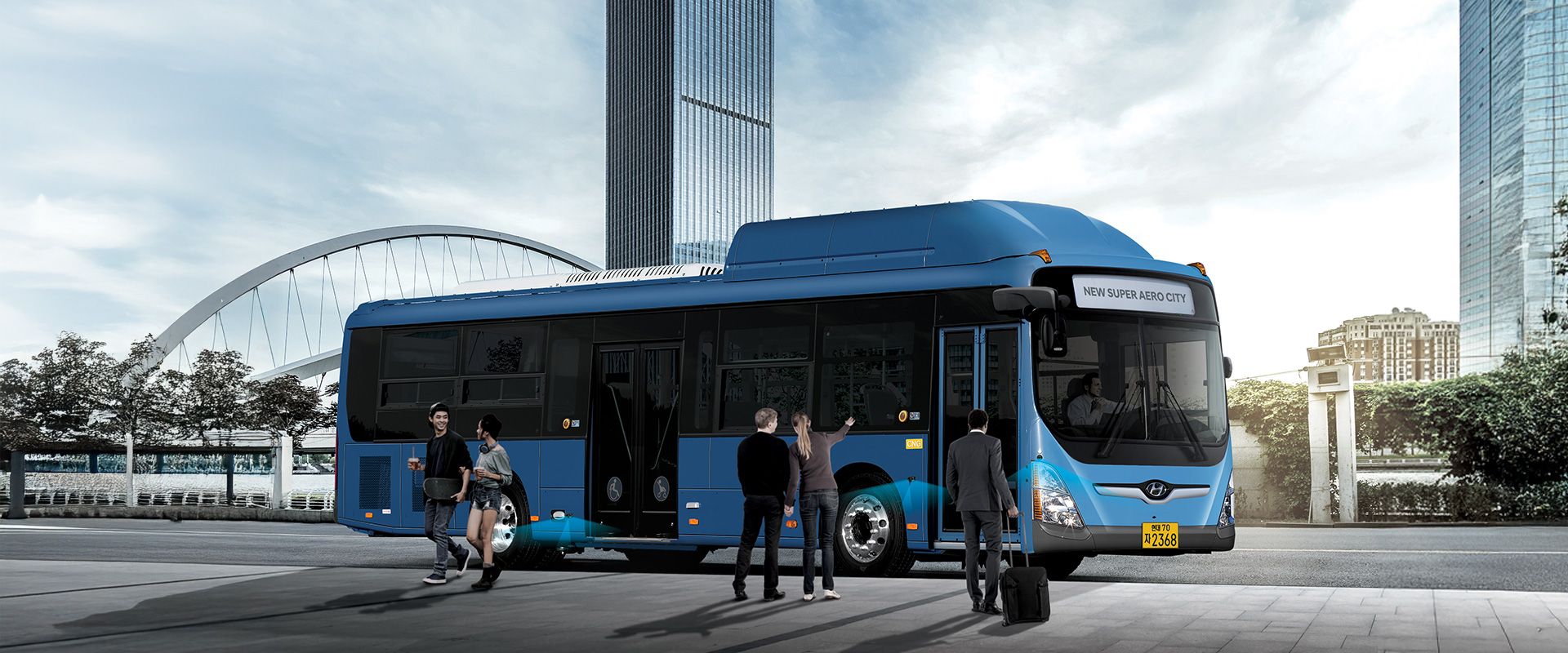 승객을 위한 최첨단 안전사양과 도시적 디자인으로 도시인과 교통약자를 배려한 환경친화적 버스, 뉴 슈퍼에어로시티 초저상입니다.
