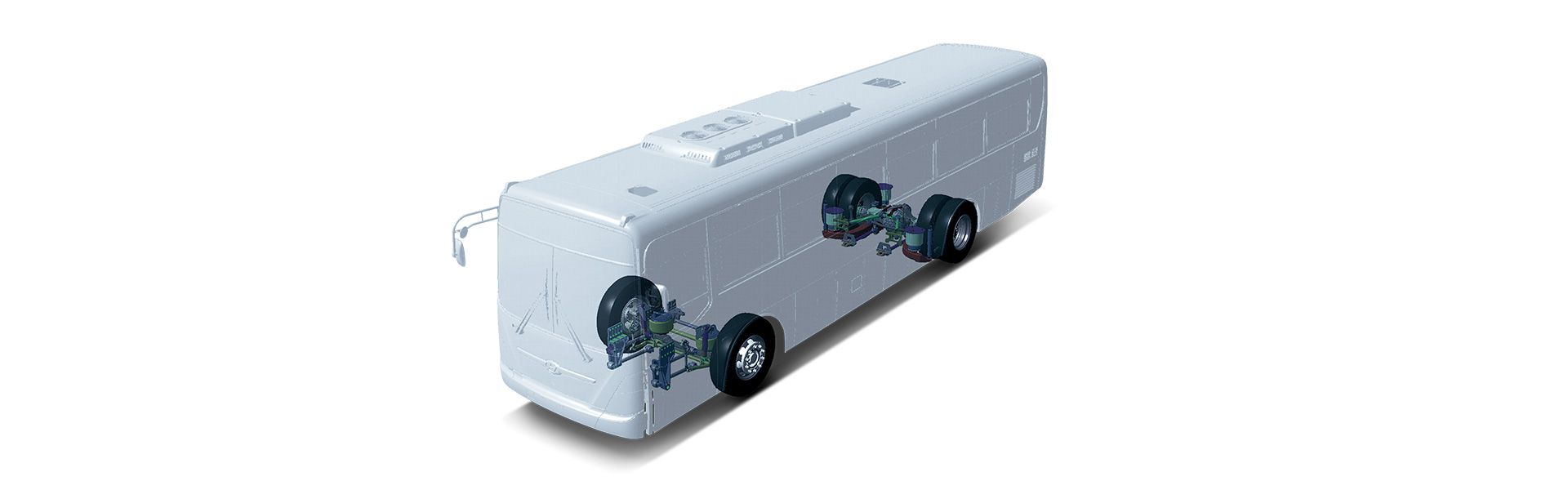 고속버스 차종에 적합한 최첨단 에어서스펜션(일체형) 시스템을 적용하여 최상의 승차감을 구현하였습니다.