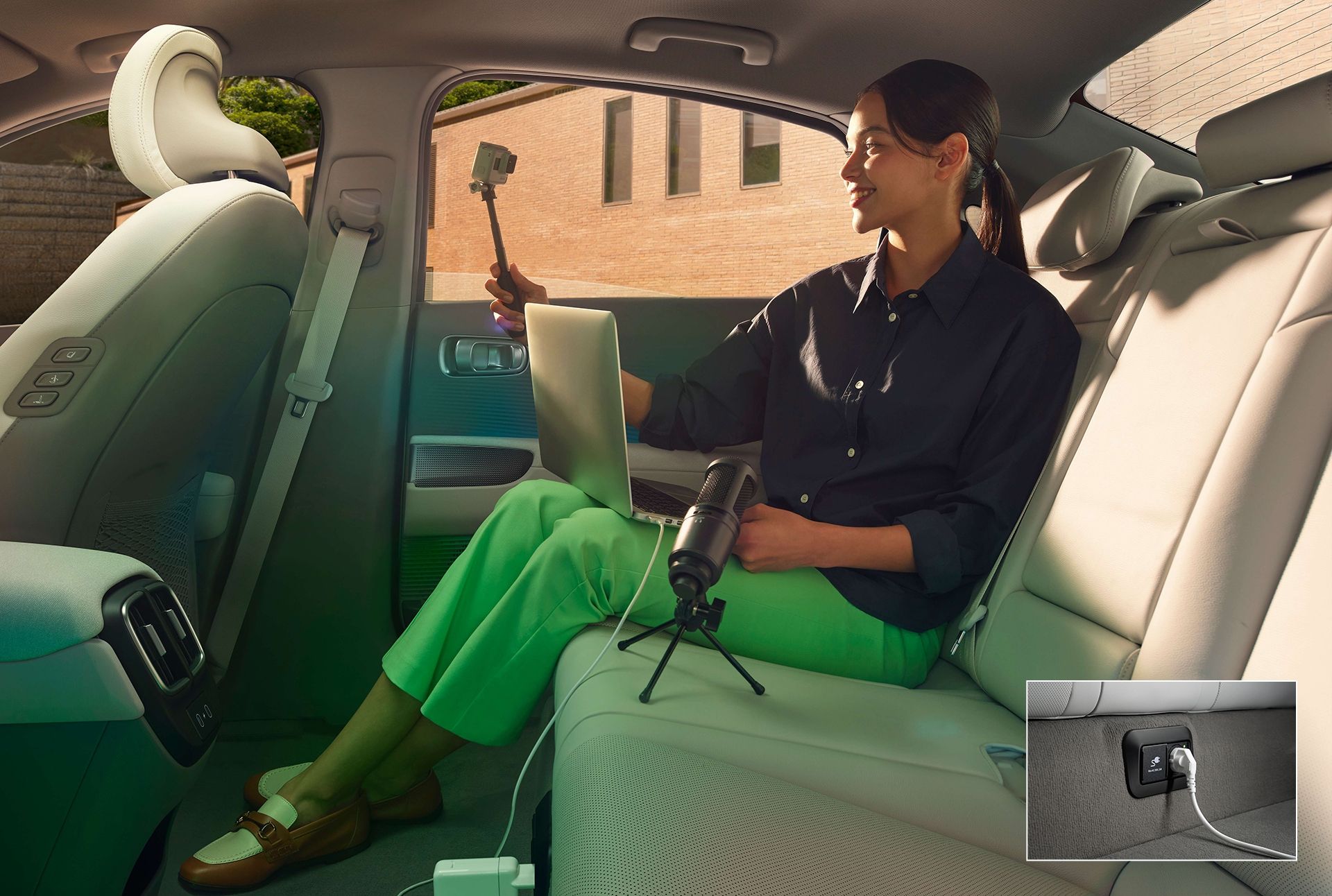 V2L هي الميزة المبتكرة في IONIQ 6 التي تتيح لك توصيل الأجهزة الكهربائية بمأخذ الطاقة من داخل سيارتك أو خارجها. يتم توفير خرج الطاقة الكهربائية العامة (230 فولت/120 فولت) من الداخل والخارج، ويمكنك استخدام قدرة 3.6 كيلوفولت/أمبير للأجهزة ذات جهد 230 فولت و1.9 كيلو فولت/أمبير للأجهزة ذات جهد 120 فولت.