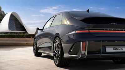De IONIQ 6 is geen gewone sedan maar een zogeheten electrified streamliner: een auto met een vloeiend, gestroomlijnd silhouet dat door de lucht lijkt te snijden. Dat ziet er niet alleen bijzonder uit, het helpt ook om aerodynamischer te rijden en zo meer kilometers uit één lading te halen.